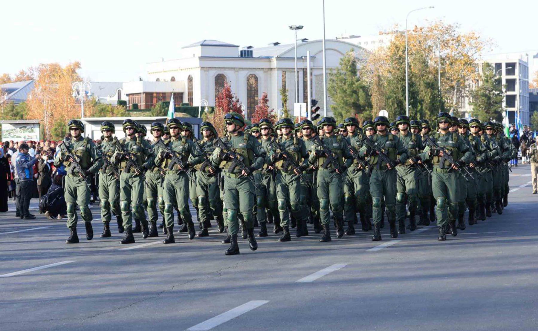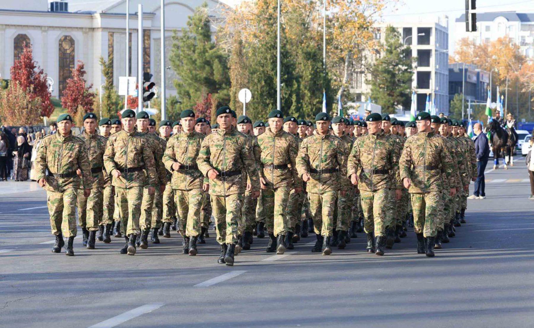 O‘zbekiston Respublikasi Davlat bayrog‘i qabul qilinganligining 34 yilligi munosabati bilan poytaxtimizning asosiy koʻchalarida Mudofaa vazirligi va Milliy gvardiya harbiy boʻlinmalarining namoyishkorona piyoda yurishlari bo‘lib o‘tdi.